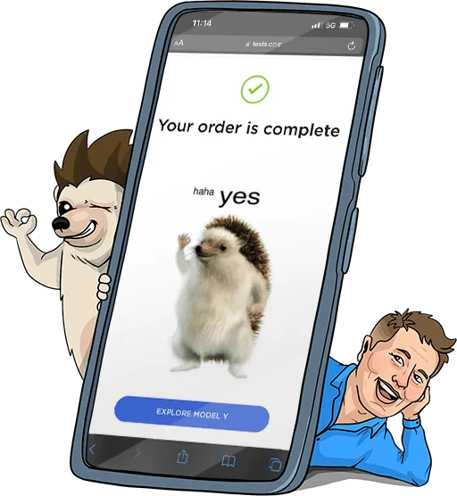 In his FIRST reveal, Elon Musk chose the adorable RIZO to be featured on the order confirmation page after purchasing a Model Y Tesla.